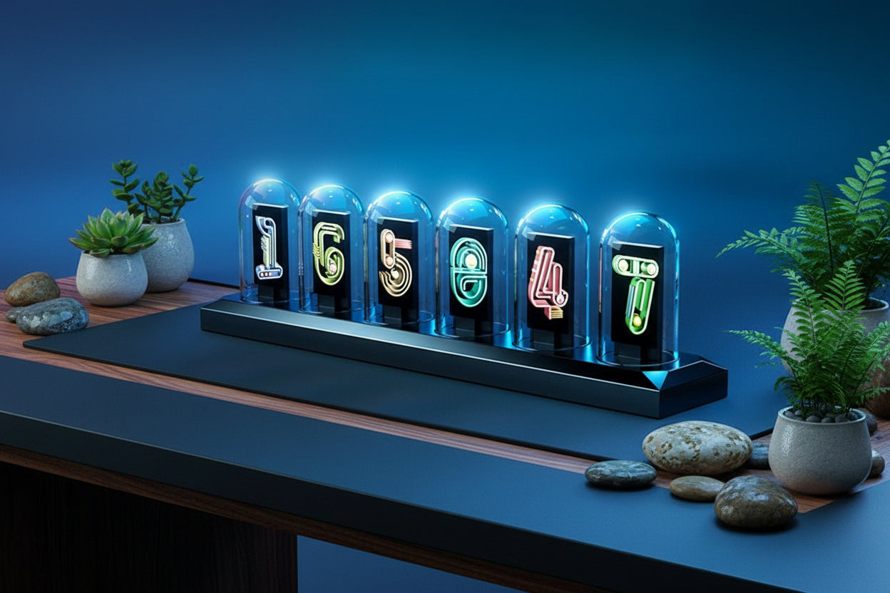 Inspired by Cold War-era Nixie tubes, it blends the soul of vintage vacuum technology with the reliability of modern IPS optics. It doesn’t just tell time. It commands the room.