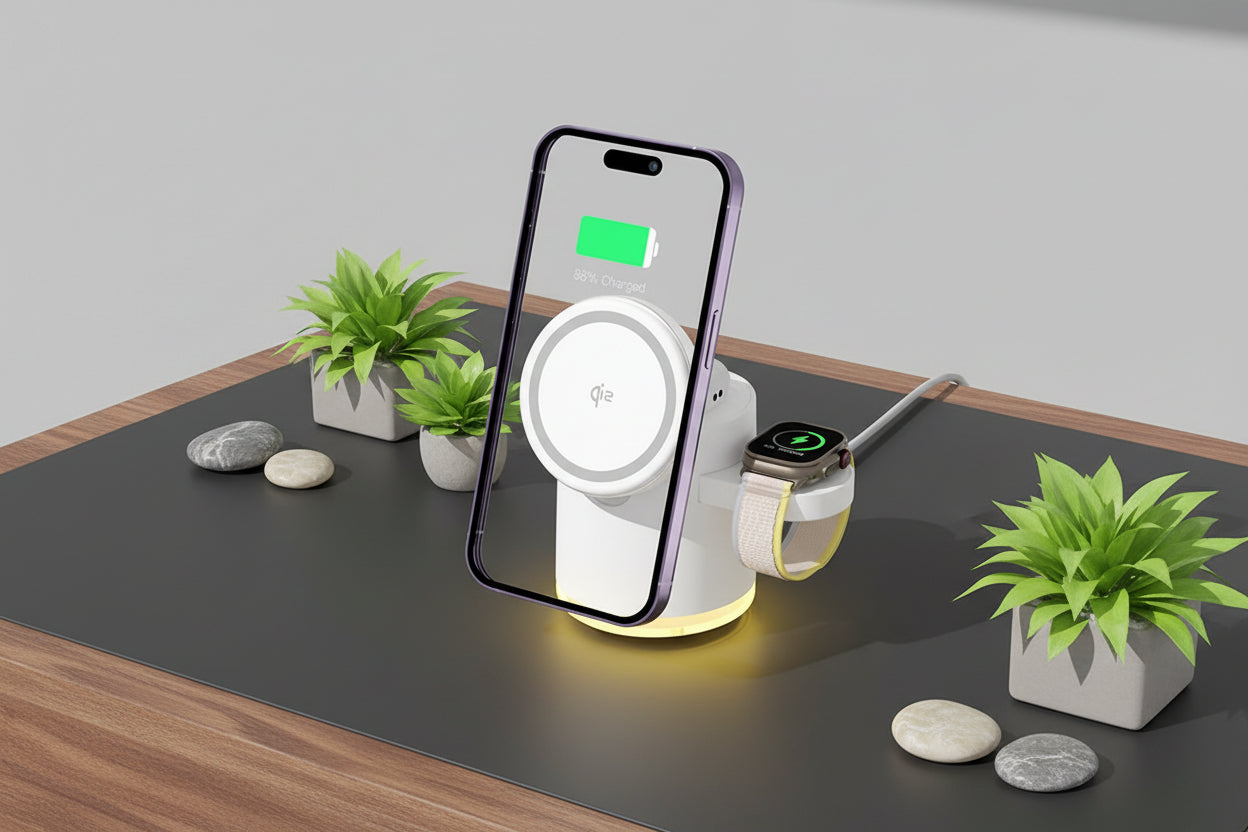 - ⚡ 3-in-1 Powerhouse: Charge your phone (15W Fast Charge), Watch, and Earbuds at the same time. Eliminate the "spaghetti mess" of cables forever.